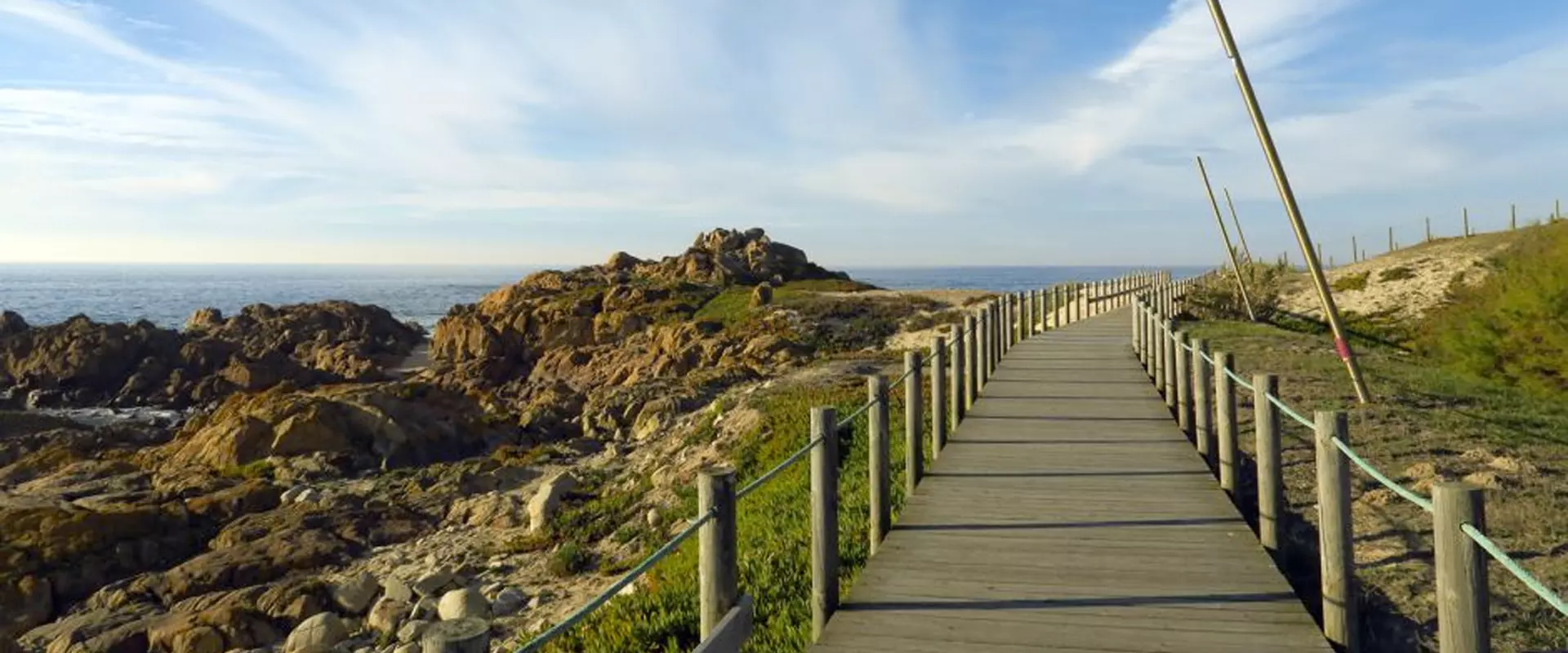 El Camino Portugués desde Oporto por la costa comienza bordeando el litoral portugués, con tramos junto al mar, dunas, playas y acantilados. En Redondela se une al camino del interior. Es una alternativa más escénica y tranquila que el tradicional camino portugués por el interior.